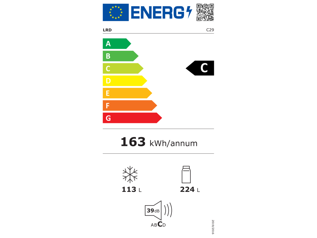 Díky úspornému invertorovému BLDC kompresoru a vakuové izolaci dosahuje energetické třídy C při zachování špičkového výkonu.